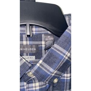 Van Heusen Navy Blue Plaid “Regular Fit” Long Sleeve Button Down Shirt M15-15.5