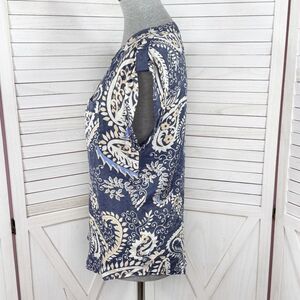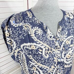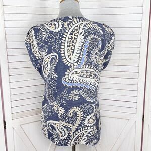 Van Heusen Paisley Cap Sleeve Button Front Shirt Blouse Blue