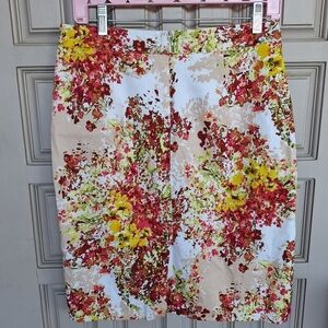 VanHeusen Studio Skirt Sz4 Sraight Floral Zip Back Lt Weight Cotton Band Waist