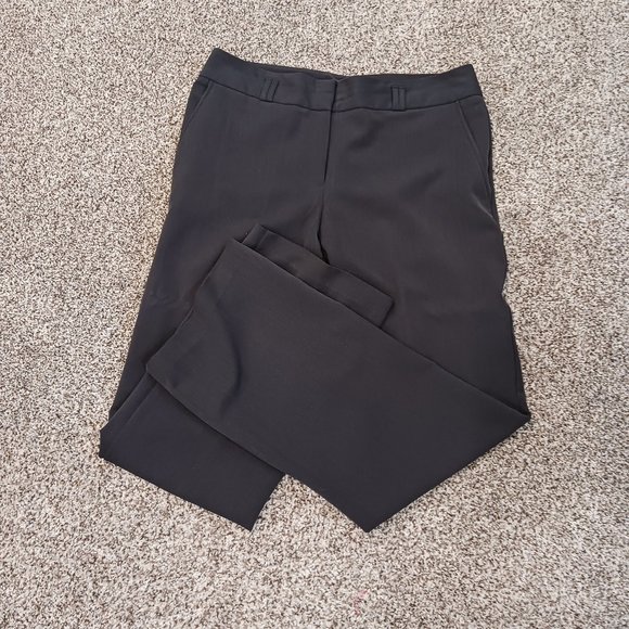 VanHeusen Studio Stretch Womens Dress Pants. Size 8. 74% Polyester/22% Rayon/4% Spandex. Very comfortable and in like-new condition. Left and right front pockets. Left and right read faux pockets. Color is slightly lighter than solid black (dark charcoal). There are a couple spots in the photos that are light coming in from outside when the photo was taken, not a flaw in the pants. Length 41". Waist 17".