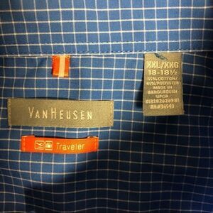 Van Heusen Blue Short Sleeve Travel Shirt Sz XXL, 18/18.5, see pictures for small mark on shirt