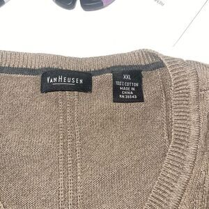 Van Heusen V-Neck Light Brown / Grey Sweater Vest - Size XXL