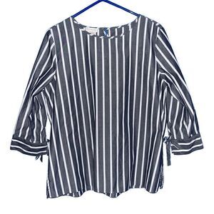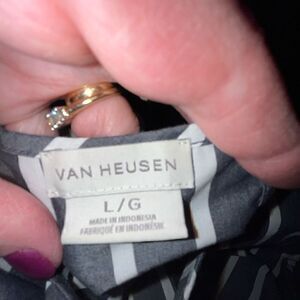 Van Heusen gray & white striped blouse large