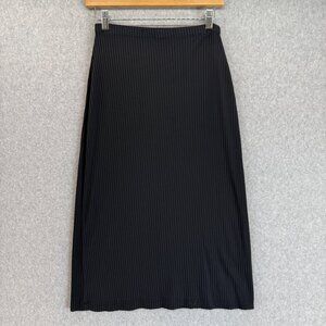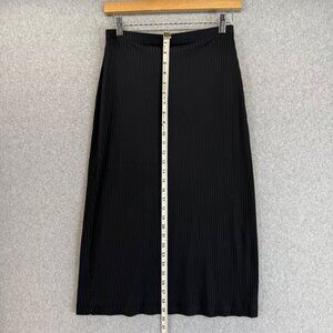 VanTisse Womens Black Ribbed Midi Skirt Pencil Office Stretch Vintage Size Small