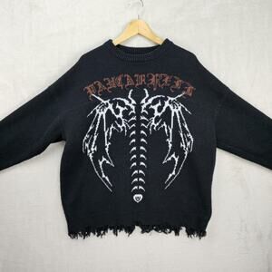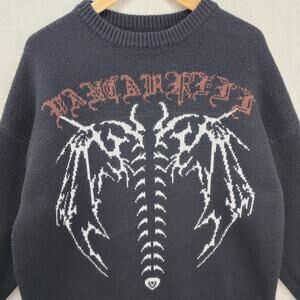 Vancarhell Knit Sweater L-XL Black Y2K Gothic Oversized Skeleton Whimsigoth