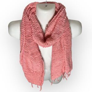 Vance Kitira Woven Pink Cotton Scarf, Shawl, Wrap With Fringe One Size