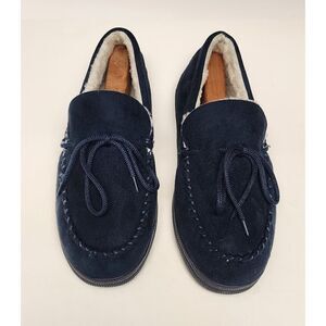 Vance Mens Shearling Slip-on Moccasin Slipper Navy Blue Size 11M.