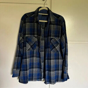 Vancort Blue Plaid Wool Blend Button Down Shirt Size XL