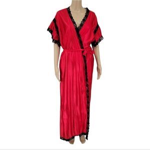 Vandemere Vintage Nightgown and Peignoir Robe Set Red Black Lace Plus Size 1X