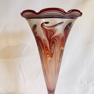 The multicolor feather design, combined with the vase's production style and technique, makes it a one-of-a-kind piece that will stand out in any collection. Whether you're a glass art enthusiast or just looking for a beautiful and unique vase, this Vandermark creation is a must-have.