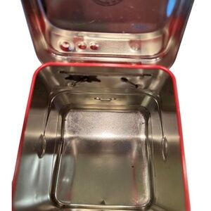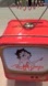 * Iconic Design: Red tin bank from 2000 in the shape of a retro television with a wire antenna and Betty Boop graphic on the screen.
