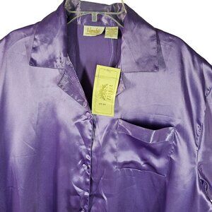 Vandré Purple Poly Satin Sleep Shirt Women XL Short Slv Covered Button Close NWT