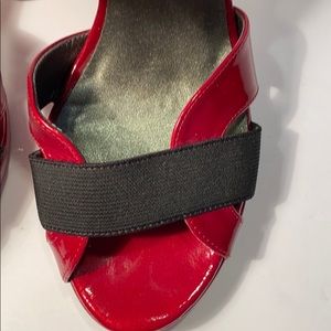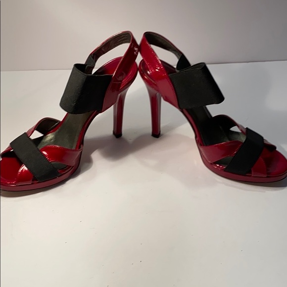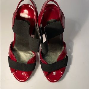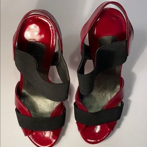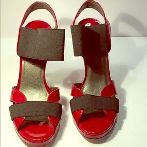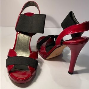Beautiful deep red and black strap sandal heels. Stunning, gently worn.