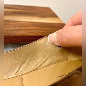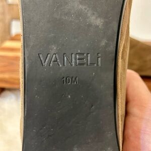 EUC Vaneli Ardelia is crafted is light brown suede with a fine gauge chain mail round toe box. Slip on styling with a small pull tan at the back. Gore inserts at the sides. Cushioned footbed makes for an extremely comfortable shoe. Flexible rubber sole. Size 10.