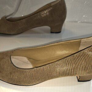 Great condition. A stylish, fully lined low-heel dress pump. Buffed leather sole with a rubber insert for added flexibility and a 1-1/4" covered heel.