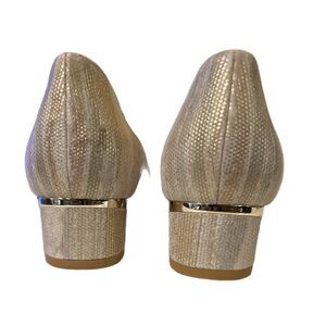Vaneli Atalie stretch fabric and patent leather pumps, with exotically embossed leather upper in a chic beige with golden accents. Slip-on design smooth man-made lining and a lightly padded synthetic footbed provide comfort throughout the day or night. Standout sculpted, wrapped heel, enhanced with a golden metal detail. Heel height 1 1/5-inch and rubber outsole for stability. NWOT | Size: 8N | Color: Crème Kimbel. Top-rated seller, same-day shipping! Shop my closet for more trendy and vintage items to complement your style.
