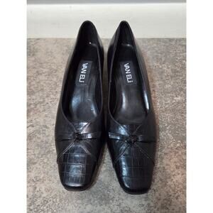 Vaneli Black Leather Croc Embossed Low Heel Pumps Women’s 6M