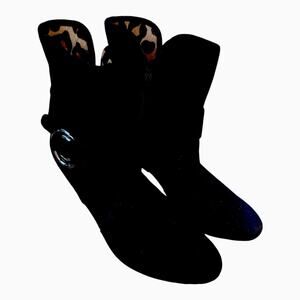 Vaneli Black Suede Heeled Ankle Bootie Zip Close Buckle Accent Animal Print