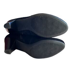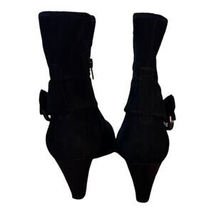 Vaneli Black Suede Heeled Ankle Bootie Zip Close Buckle Accent Animal Print Sz7N