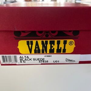 Vaneli Black Suede Kitten Heel Loafer 9N. Timeless, very elegant and comfortable shoe for everyday, business, and/or evening wear. Purchased directly from specialty shoe boutique that specializes in Vaneli. Well taken care of and always kept in original shoe box. Worn twice so heels and sole are in excellent condition.
