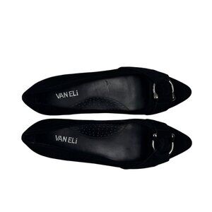 Vaneli Black Suede Slip On Flats/Loafers W/Metal Ring Detail Women's Size 8.5 N