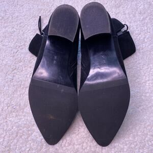 Vaneli Black Velour Ankle Bootie Size 8. Preowned and barely worn. They look great and look fabulous. Left front toe point shows only wear. Approx measurements in photos.