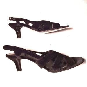 Vaneli Black Velour Heels. Real leather listed on the bottom in Italian (Vero cuoio). Gently used. Women's 8.5