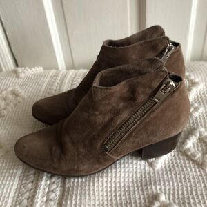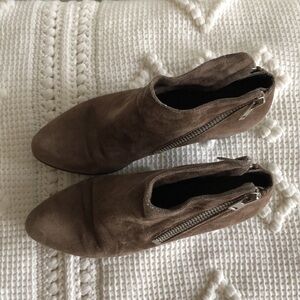 Vaneli Block Heel Side Zip Brown Suede Low Heel Ankle Boot Bootie Shoe Size 9.5