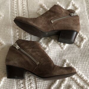 Medium brown suede with silver zipper accents