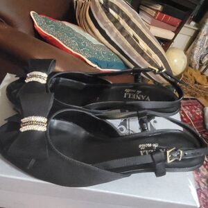 Stylish black satin shoes by Vaneli, made in Italy Vero Cuoio, designed for Elegance & for Supreme Comfort. Perfect for elegant occasions. Leather with fine black satin cover.