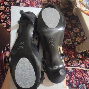 MINT Condition. High-end make/ model. There is not a single sign of wear on these Derrall Black Satin heels with Genuine Leather as the bottoms say "Vero Cuoio".