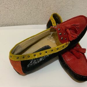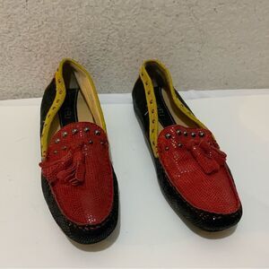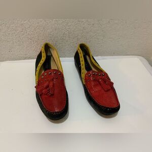 Vaneli Driving Loafer Leather Shoe Slip On Red Black Yellow 9.5A