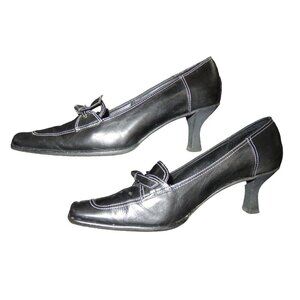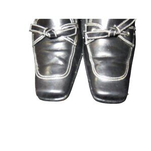 Vaneli Gelise Black Italian Calf Leather Square Toe Bow Embellished Loafer sz 8