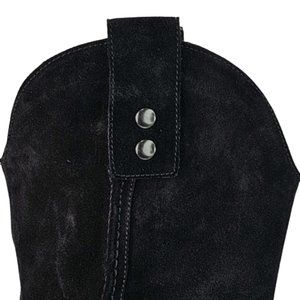 Vaneli Hash Black Nubuck Knee High Vintage Costume Stitching Design Adjustable Snap Pull On Strap Heel Boots
