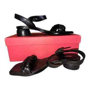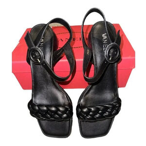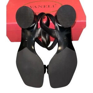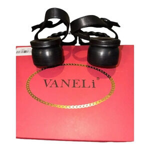 Vaneli Kalee sandal with heel in the color black super nappa, size 7.5. New in box, complete with dust covers. Heel height is 1 1/4 in.