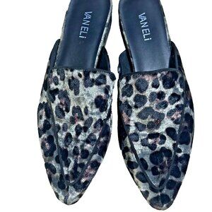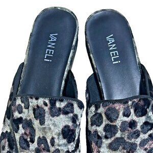 Stylish Vaneli mules with a leopard print. Comfortable slip-on design. Perfect for casual wear.