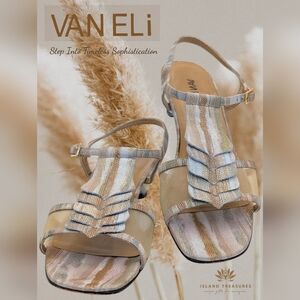 Vaneli LowHeel Slingback Women Sandals Sz 11N Gold Metallic Sculpted Leaf Accent