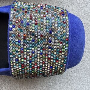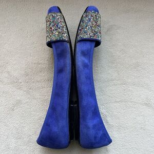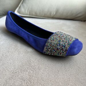 Vaneli Nabila Jordan Royal Blue Suede Flats Rhinestone Flat Shoe Women 8W Square