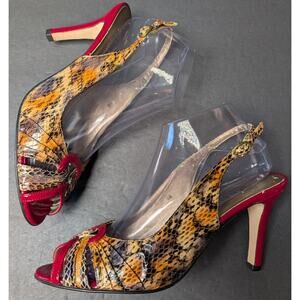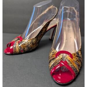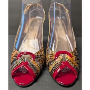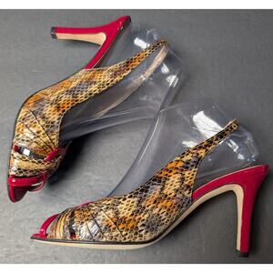 Vaneli Red Patent Leather Snakeskin Heels WOMENS SIZE 9N Dressy 3.5" Peep Toe