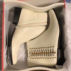 Sleek and stylish, the VANELi Rheta Ankle Bootie will be your instant favorite. The metal chain embellishment and grommets lend a chic touch, while the padded insole and inner-side zipper offer cushioning and secure fit.