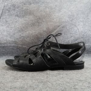 Used Vaneli Shoes Womens 9 Sandal Gladiator Leather Lace Up Flats Fashion Black Boho