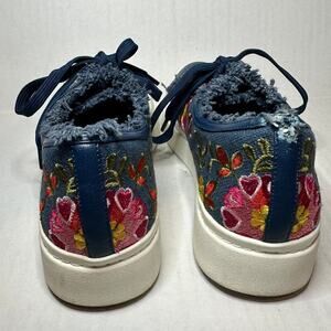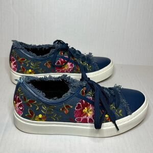 Size 7 Blue Floral Embroidered Lace Up Low Top Sneakers Casual