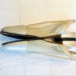 Vaneli Slingback Low Heel Shoe Metallic Beige Mesh Sides Round Toe size 8