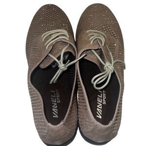 Vaneli Sport Taupe Suede Rhinestone Lace Up Sneakers Size 9 Narrow NIB