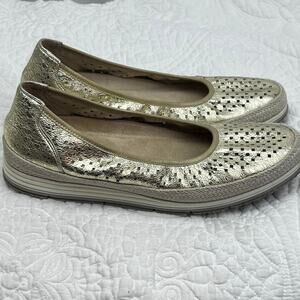 Vaneli Sport Womens 7.5M Gold Flat Slip On Comfort Athleisure Vacation Shoes
