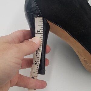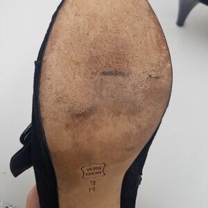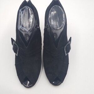 Vaneli Suede Patent Leather Bootie Peep Toe Buckle