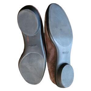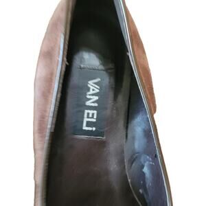 Classic women’s loafers by Vaneli (also searched as Van Eli) in rich brown suede leather. Timeless tassel toe design with a 1.25" block heel and slip-on comfort. Suede upper with leather lining for quality and durability. Preppy and versatile — perfect for officewear, executive looks, or polished casual outfits. Excellent gently worn condition with no visible flaws.