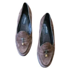 Vaneli Van Eli Women’s Brown Suede Leather Tassel Loafer Shoes 8.5 Slip On