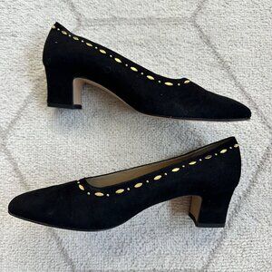 Vaneli Vintage 80s/90s Black Suede Pumps With Gold Studded Embellishments sz 9