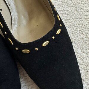 Vaneli Vintage 80s/90s Black Suede Pumps With Gold Studded Embellishments sz 9